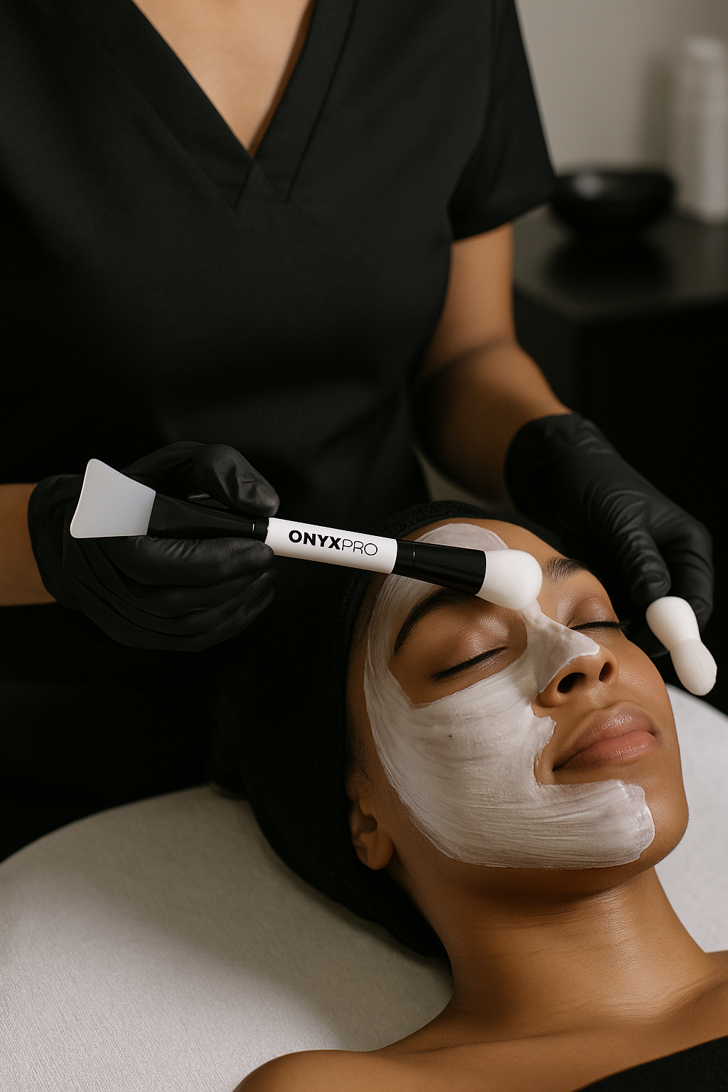 The OnyxPro Duo Mask Spatula is a dual-ended essential for estheticians who value precision and efficiency. One end features a soft, dense brush for smooth mask application, while the other end includes a flexible silicone spatula ideal for scooping, mixing, and evenly spreading products. This all-in-one tool keeps your workflow clean, professional, and hygienic.